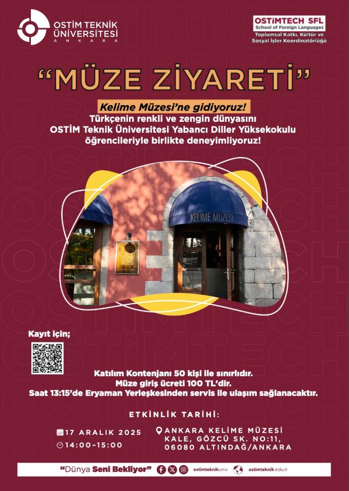 Yabancı Diller Yüksekokulu olarak sizi, Ankara Kelime Müzesi’ne düzenleyeceğimiz keyifli ve öğretici bir geziye davet ediyoruz!